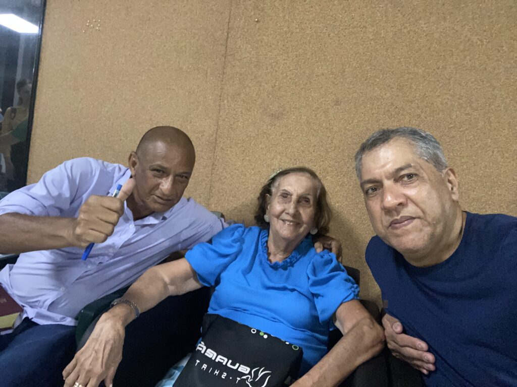 José Ribamar Bogea filho ( editor do blog da Página Gospel, dona Marina Feitosa, 94 anos e João Jorge, prontos para Louvar e adorar o Rei Jesus em mais um culto da Igreja Batista Central em São Luís.