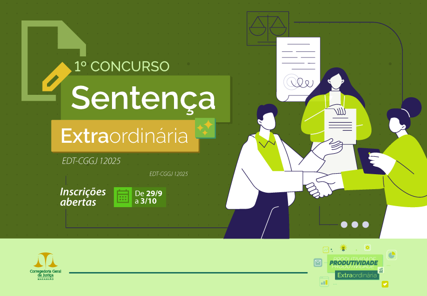 A Corregedoria-Geral da Justiça do Maranhão (CGJ-MA) torna público o Edital do 1º concurso Sentença Extraordinária, instituído pela Portaria-CGJ nº 2525. O certame tem como objetivo reconhecer sentenças de mérito que se destaquem pela qualidade técnica, clareza, coerência e relevância social. As inscrições deverão ser realizadas de 22/09/2025 até às 23h59 do dia 03/10/2025 por meio do formulário disponibilizado no Portal do Judiciário.