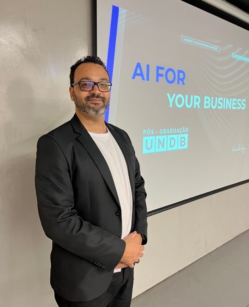 O expert em IA e engenheiro de promot sênior, professor Fernando Veiga (FIA/SP) é parceiro da Pós- Graduação da UNDB, nas três imersões em IA para médicos, advogados e empresários