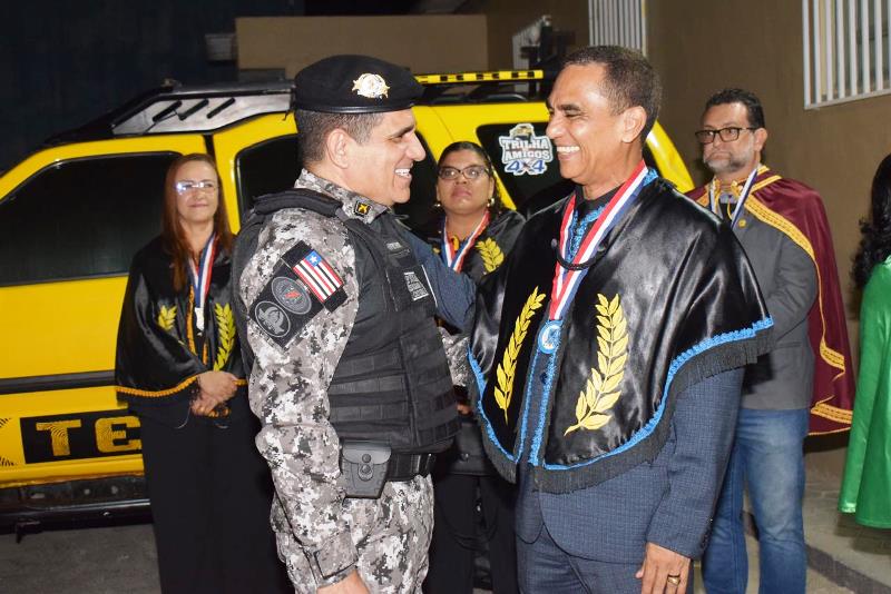 Coronel Furtado, presidente da Amclam, recepciona o coronel Wallace Amorim, comandante-geral da PMMA