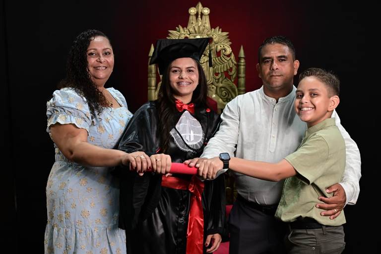 Yasmin Mel com os pais Magno Leite e Vânia dos Santos; e o irmão, Yohan Messias